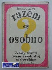 Razem czy osobno? : zasady pisowni łącznej i rozdzielnej ze słownikiem / Irena Arctowa. - Wyd. 7. - Warszawa : "Wiedza Powszechna", 1972 (Wrocław : Druk. Kartogr., XI). - 157, [3] s. ; 15 cm.