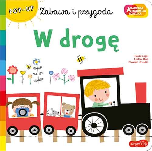 Książeczka W drogę przedstawia krótką historyjkę o chłopcu, który wyobraża sobie, że jest kierowcą. Na każdej rozkładówce chłopczyk zawozi swoich przyjaciół w różne miejsca – autobusem jadą do szkoły, samochodem na piknik, a statkiem płyną wśród fal. Książeczka zawiera elementy POP-UP, czyli piękne i barwne ilustracje w formacie 3D, które dodatkowo pobudzają wyobraźnię i zachęcają do wspólnego czytania.